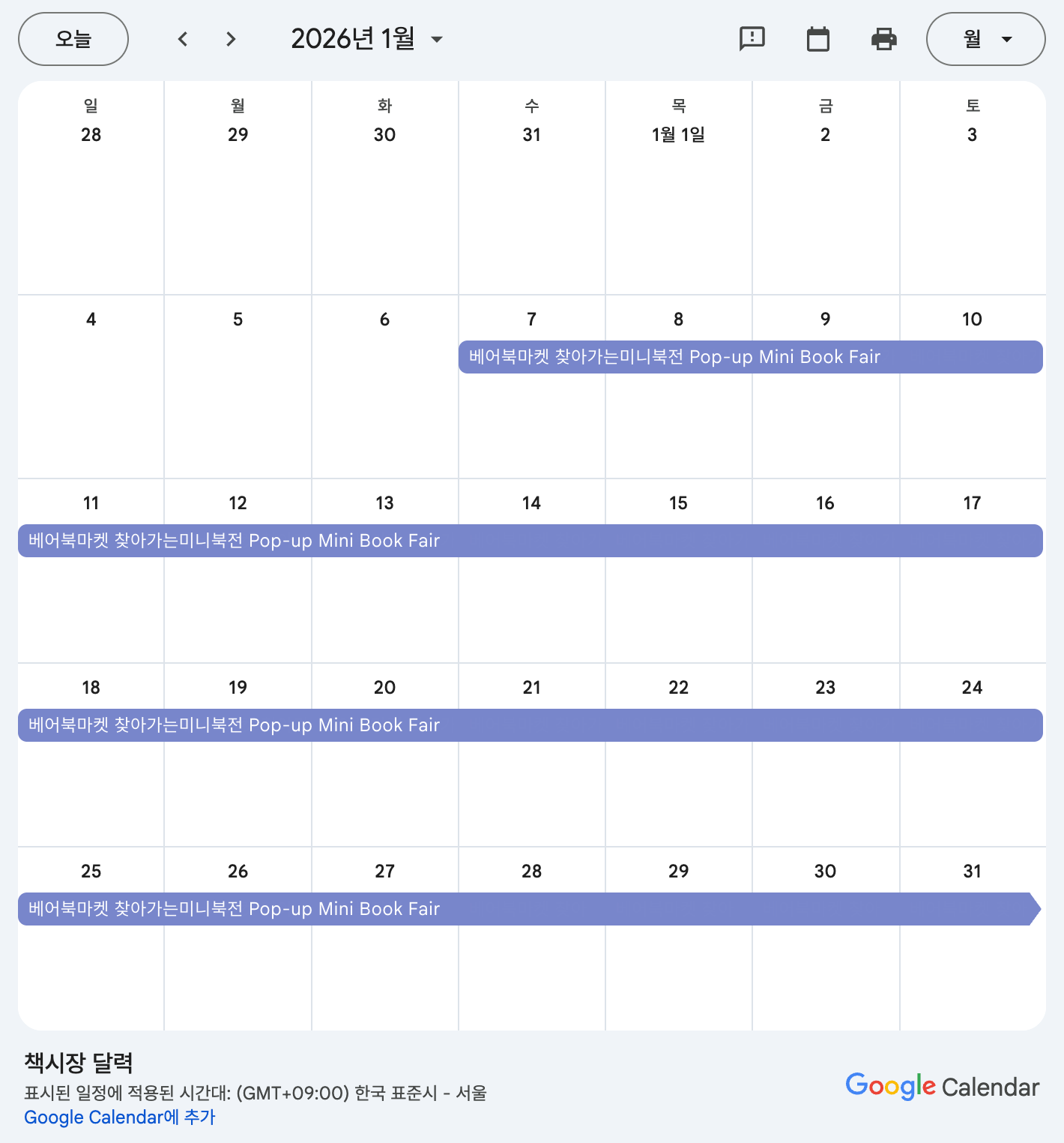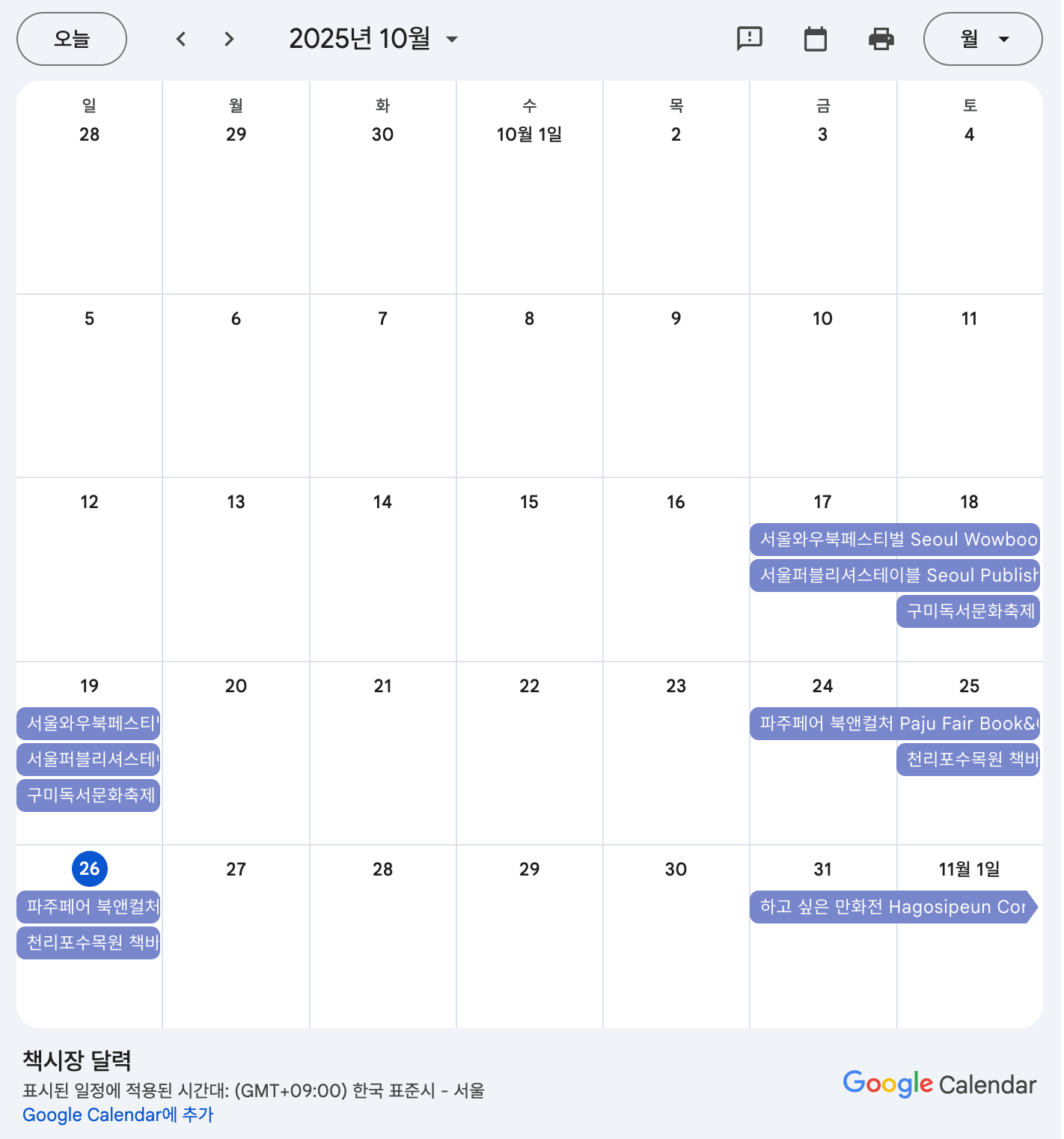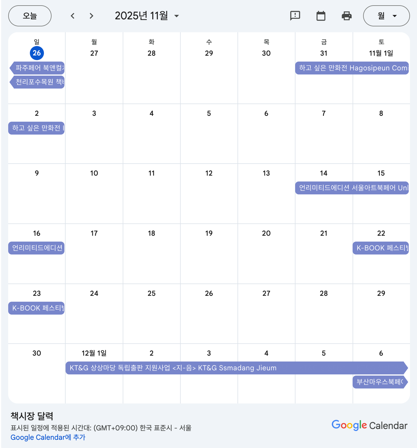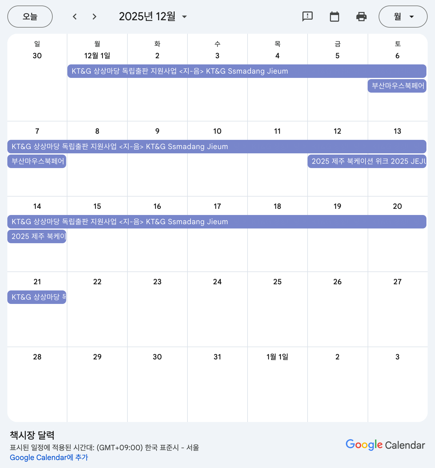 Korean Book Market Calendar 2025 #독립예술 #출판 창작자를 응원하는 #북페어 #북마켓 뭐라 부르든 함께 만들어 가요. 이제 내 달력에 추가하고, 언제 어디서나 모바일로 즐기세요.