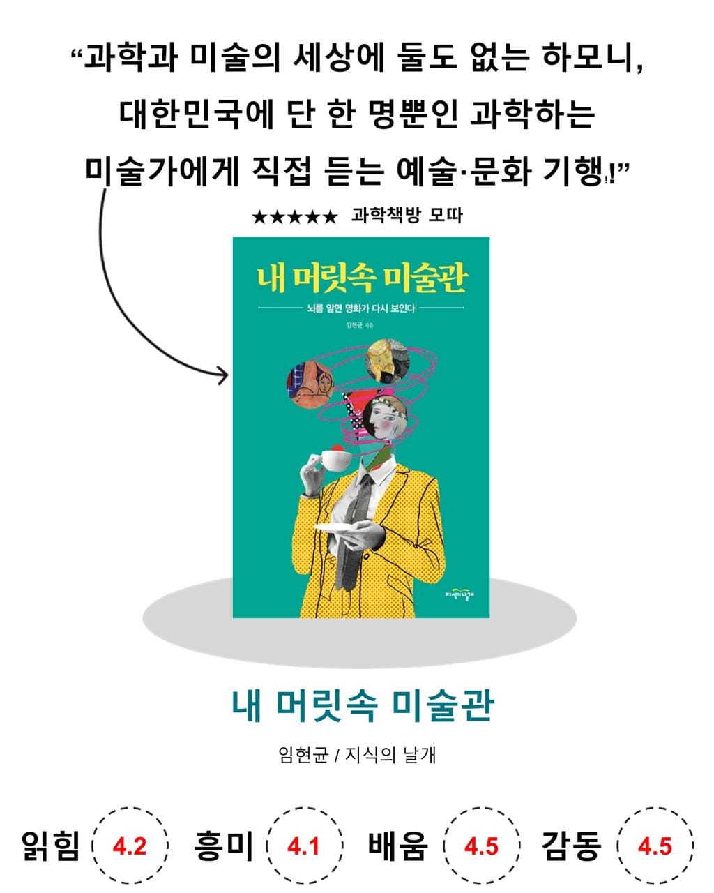 10.“과학과 미술의 세상에 둘도 없는 하모니, 대한민국에 단 한 명뿐인 과학하는 미술가에게 직접 듣는 예술 · 문화 기행!”