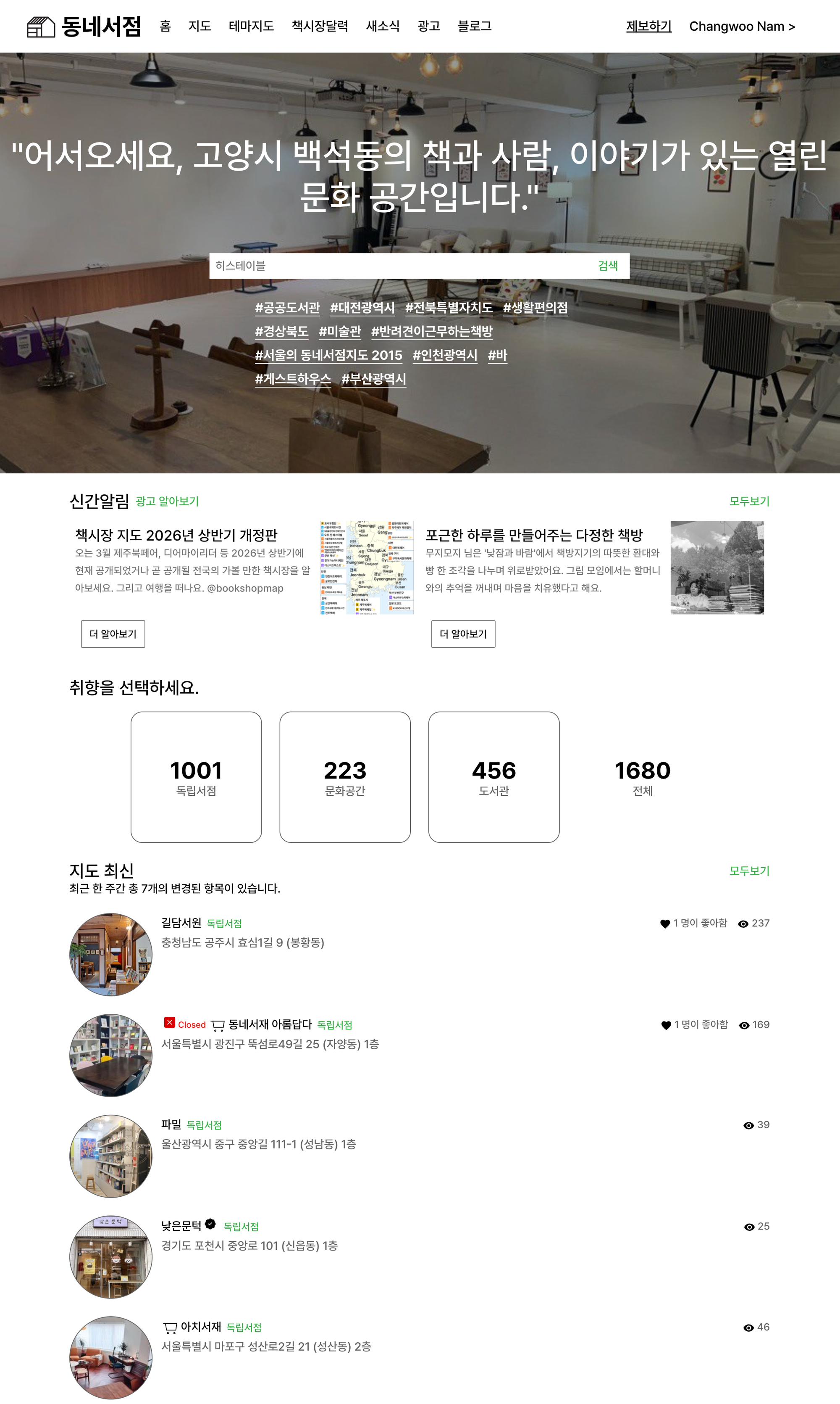 - 2026년 3월, 동네서점 지도에 등록된 운영 중인 독립서점 수가 처음으로 1천 곳을 돌파했습니다.