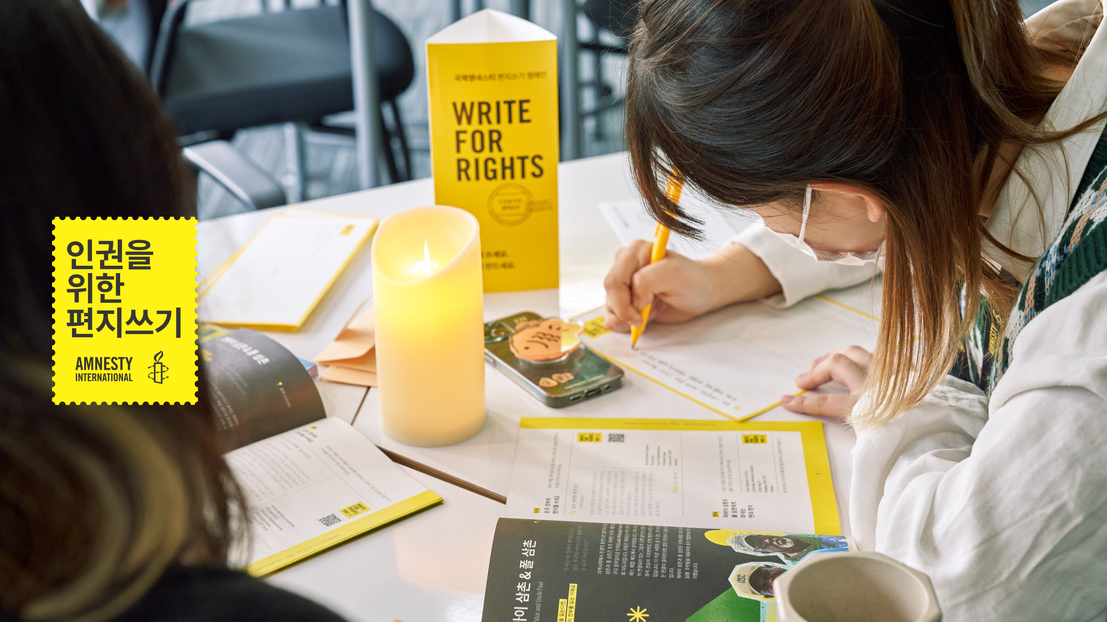 [인권을 위한 편지쓰기@동네서점]은 인권 사각지대에 놓인 사람들을 위해서, 독립서점에서 편지를 쓰는 활동 캠페인입니다. 국제앰네스티 한국지부는 [편지쓰기@동네서점] 활동을 통해 더 많은 이들이 일상 가까이에서 인권의 소중함을 돌아보고, 작은 행동으로도 세상을 바꿀 수 있다는 믿음을 함께 나누길 바랍니다.