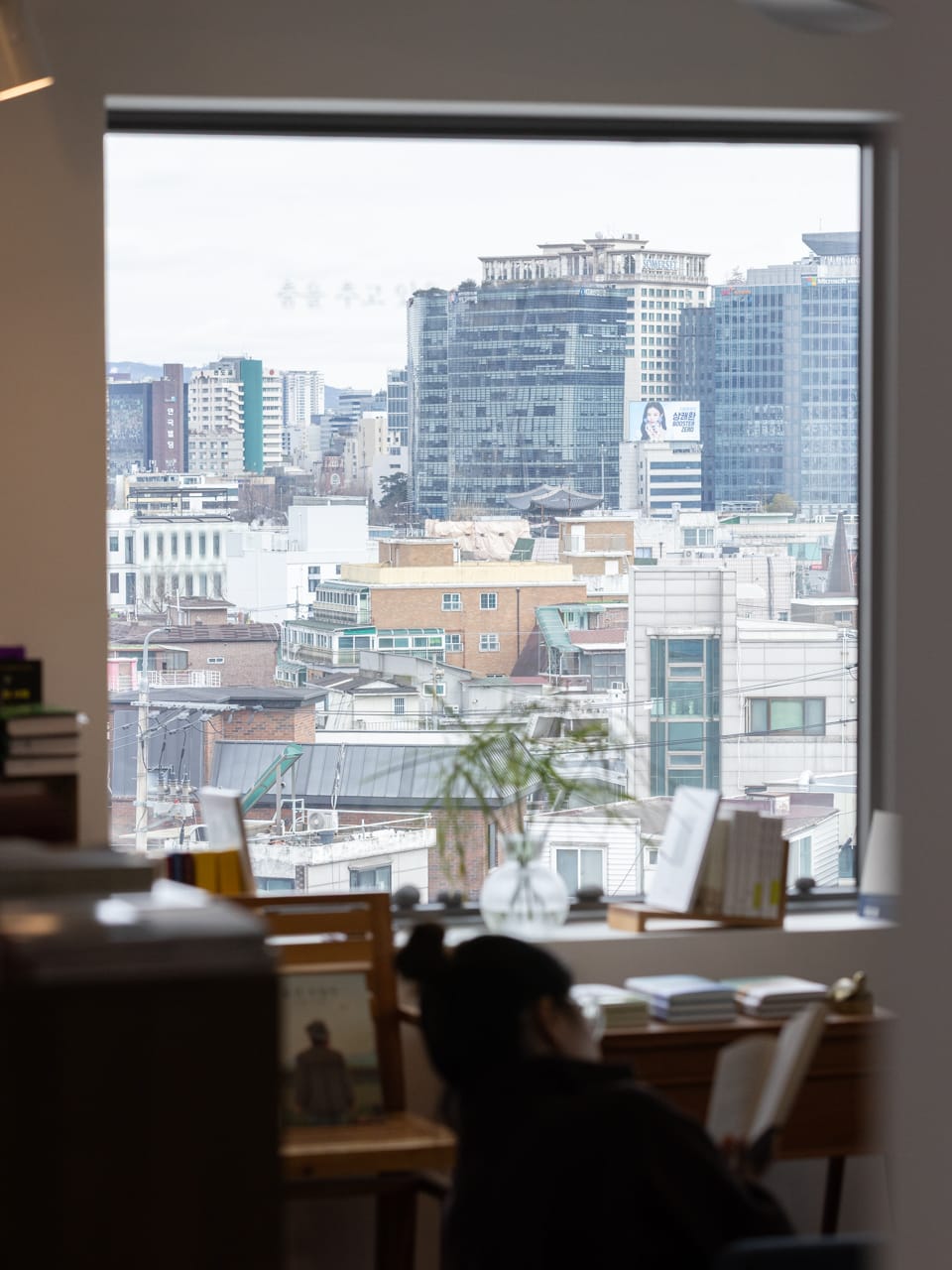 서촌을 내려다보는 북살롱 텍스트북은 책과 음료, 풍경이 어우러진 공간이에요. 서연 님은 이곳을 자주 찾으며 독서와 가까워졌고, 삶의 안식처 같은 안정감을 느낀다고 해요.