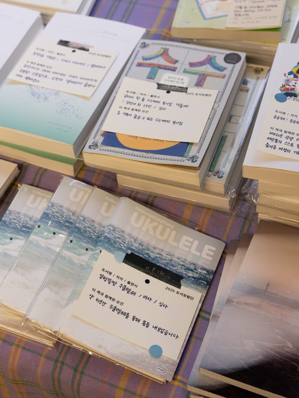 올해의 도서유람단은 대전 ‘다다르다’ 서점에서 열렸습니다. 전국 독립책방지기들이 모여 각자의 책과 이야기를 나누는 행사예요. 인디문학1호점·더폴락·샵메이커즈 등 다양한 책방이 참여해 개성 넘치는 도서와 경험을 공유했다고 해요.