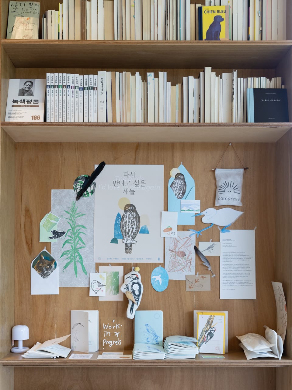 솜프레스+배현정 초대전. 판화로 옮겨진 새들의 형상과 그 시간을 기록한 생활탐조일기 <새소식>을 소개하고 전시하는 행사입니다. 2025년 6월에는 ‘이름 모를 책들의 귀환’이라는 이름의 행사를 진행했어요. 무명서점 인스타그램에서 소식을 받아보세요.