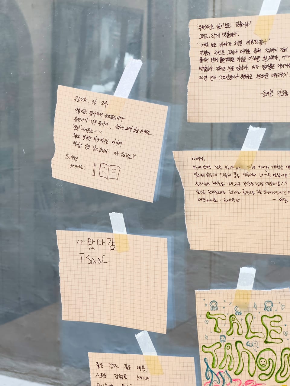 테일탱고는 그 유명한 '망리단길' 근처에 있다 보니 주변에 즐길거리🪄도 굉장히 많은데요. 책방지기는 바로 앞에 있는 카페 '히카'에서 정성스럽게 만든 케이크🍰를 먹는 것도 좋고 '스콘포드로그'에서 스콘🧇을 즐겨보는 것도 추천했습니다. 그리고 다른 곳에서 보기 힘든 떠먹는 베이글을 먹을 수 있는 '이오오' 도 유명해지기 전에 가보라고 알려주었답니다.