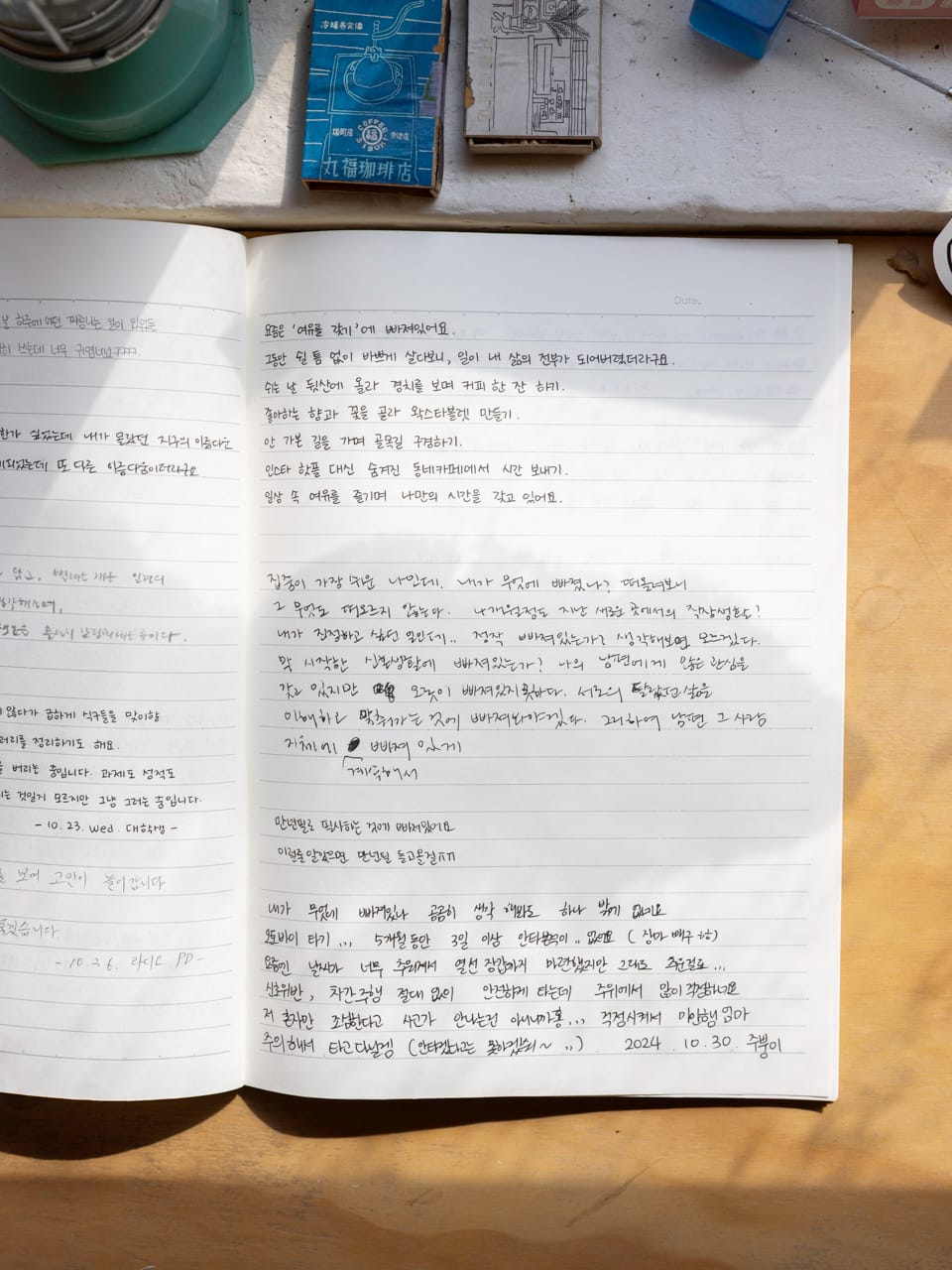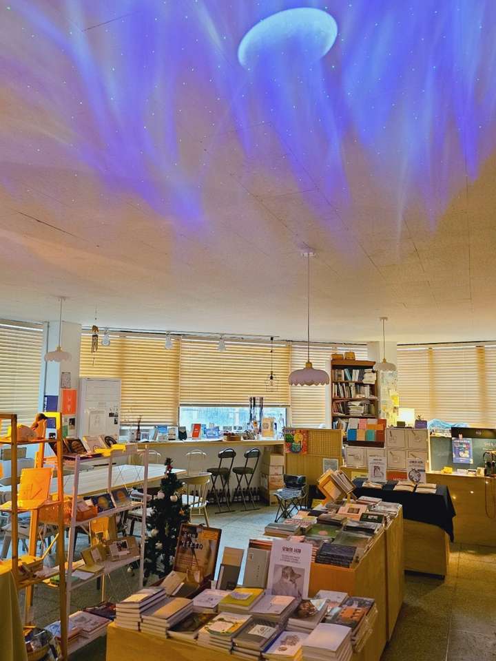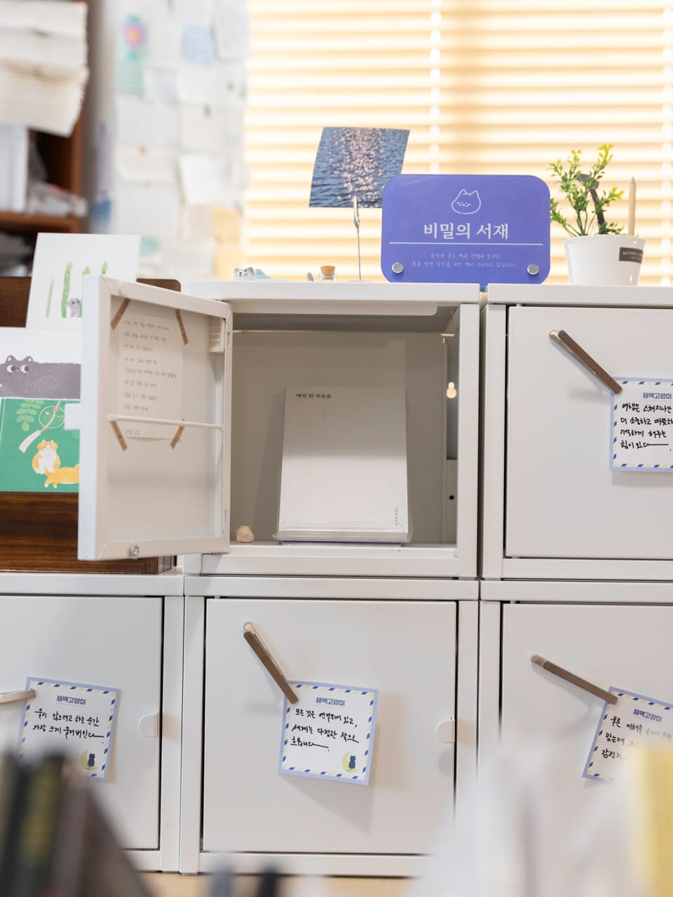작은 무인 서점 ‘새고서림’은 독립출판 작가 수민 님이 운영해요. 일본문학 기반의 ‘프로젝트 메이지’와 항공권·오디오북 형태의 독특한 책들을 선보이고 있어요. 언제든 열려 있는 공간에서 책의 다채로움을 느낄 수 있답니다.